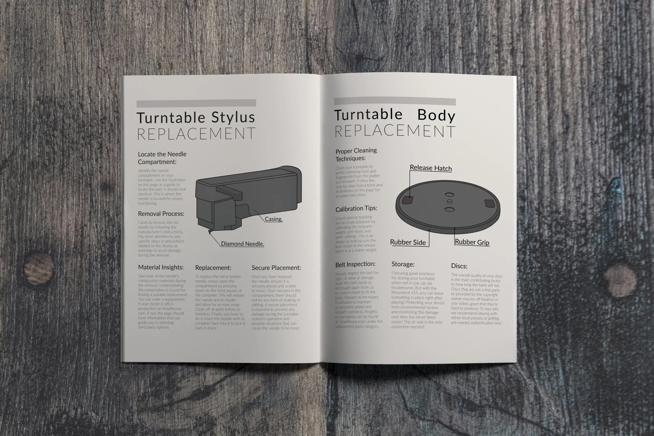 This campaign emphasizes page formatting and places technical illustration as the focal po. In response to the client’s, VinylRevive, request, the focus was on providing clear and digestible visuals showcasing their products. The goal was to simplify the appearance for individuals seeking a straightforward guide on product features. The solution involved the creation of boldly outlined, user-friendly illustrations accessible to anyone.